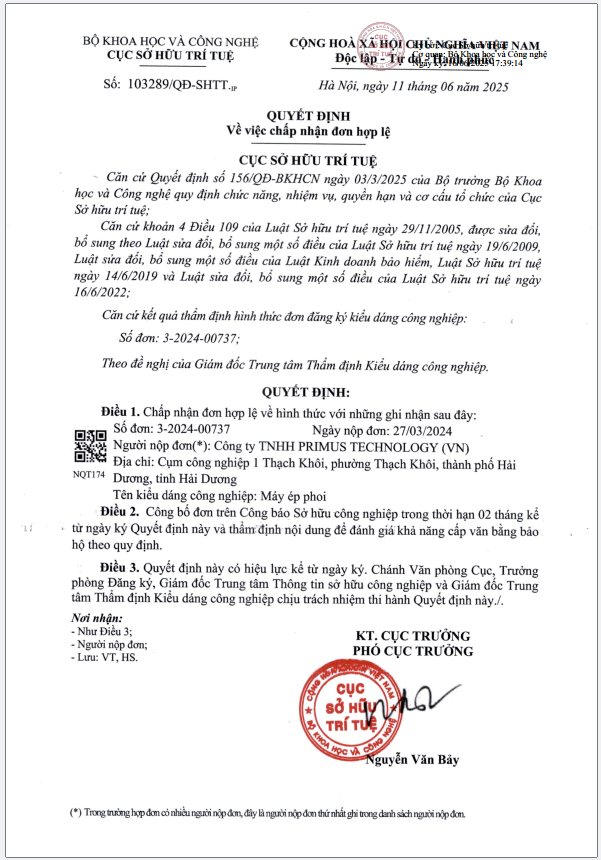 We are proud to hold the Certificate of Industrial Design Registration issued by the Intellectual Property Office of Vietnam, demonstrating our capability for creative and distinctive product design.