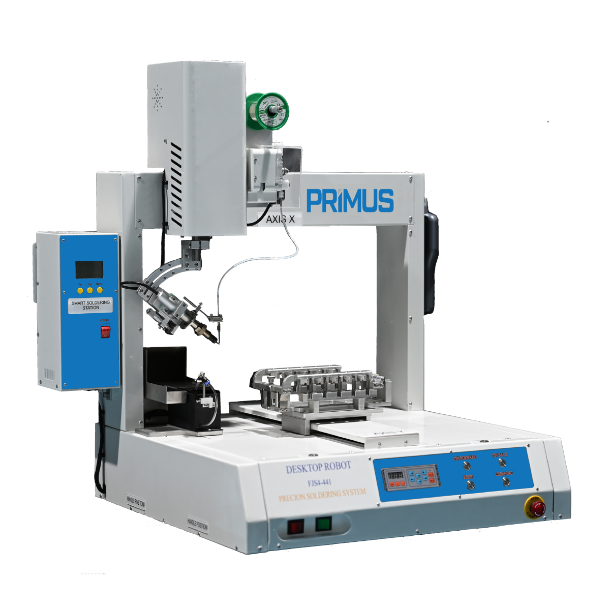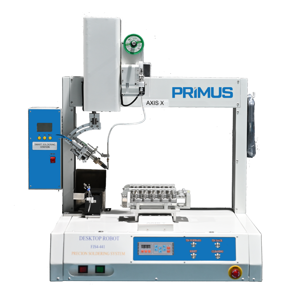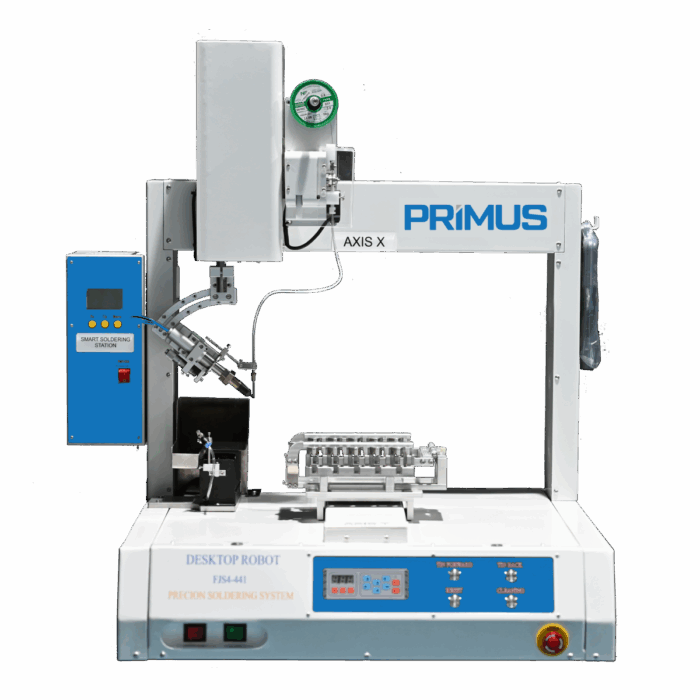 Máy hàn bán tự động là robot hàn loại desktop hiện đại, trang bị mỏ hàn 300W điều khiển PID và cơ cấu cấp dây thiếc tự động. Máy đảm bảo mối hàn chính xác, đồng đều, dễ vận hành và phù hợp cho nhiều ứng dụng như hàn PCB, module điện tử phức tạp, dây điện nhỏ và connector. Giải pháp tối ưu giúp tăng năng suất, giảm sai sót và tiết kiệm chi phí sản xuất.
